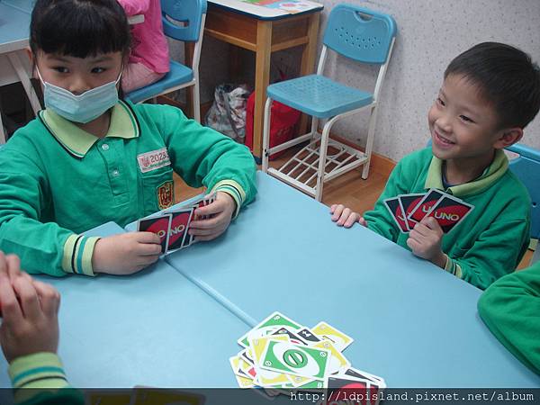 二年級的孩子今天老師要讓大家進行的遊戲是「uno」